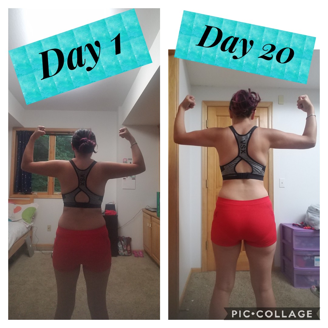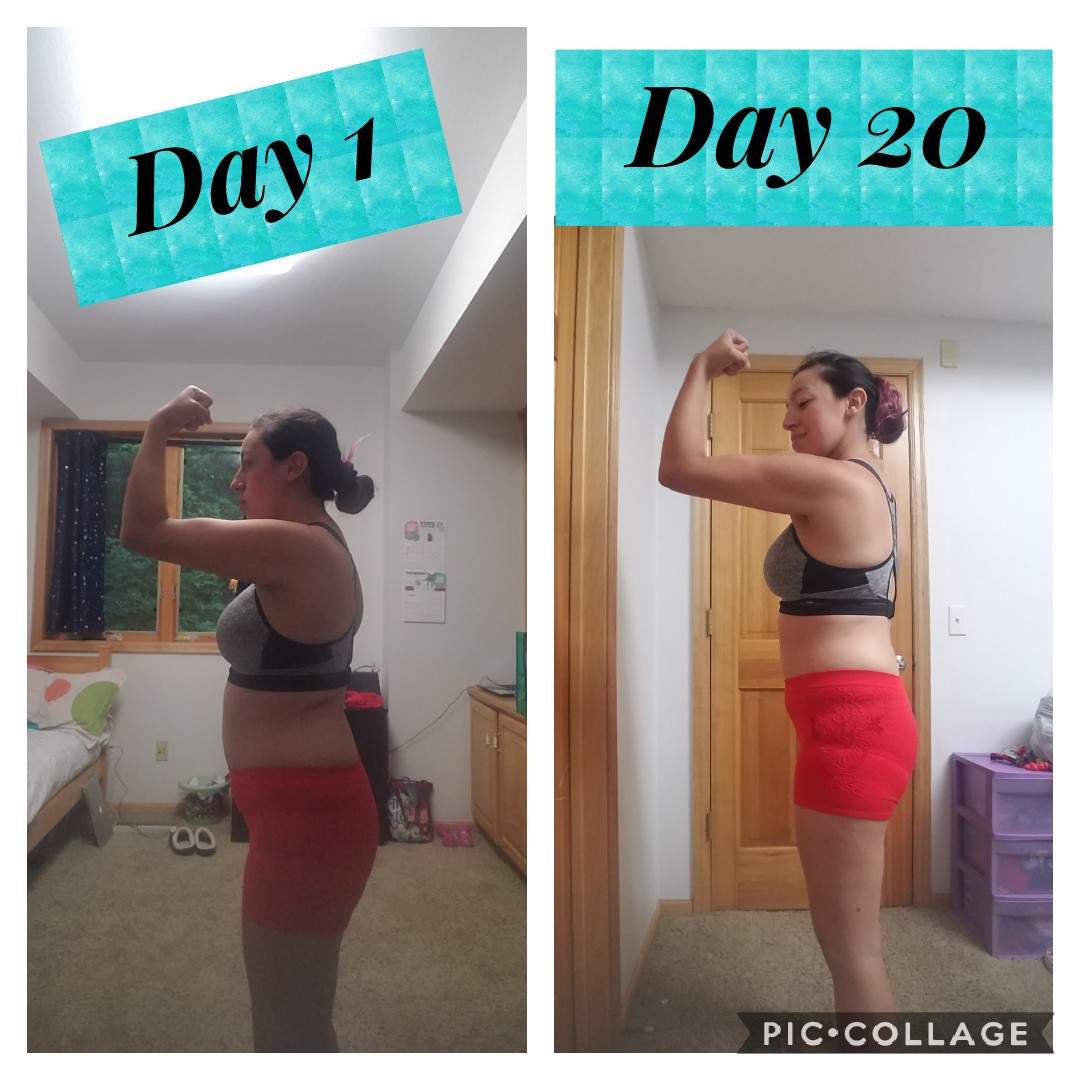 With all that being said it has only been 20 WORKOUTS!!! Less than a month and look at this amazing progress. It may be little but to me this is an accomplishment. I am in a better place, not just physically but I am happier and I actually have learned to love my body for all it has to offer. My body has shown me it’s only as strong as I let it be. I have fallen in love with myself. That in itself is a HUGE accomplishment. I never have loved myself the way I do now. I have so much more confidence in myself and in my body. I’m not embarrassed of my body or me. This journey has only been 20 workouts but I have learned more about me and my body than I thought I could in such a short amount of time. I am happy and I can’t wait to finish this program. I am lucky I found something that worked for me. I want to help others. I want them to be able to feel the way I do. I want them to feel the love and fall in love with themselves and their bodies. Because it truly is the best thing you could ever feel, besides the unconditional love you have for your kids. 🙂
